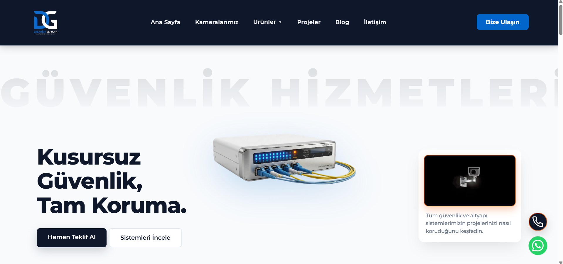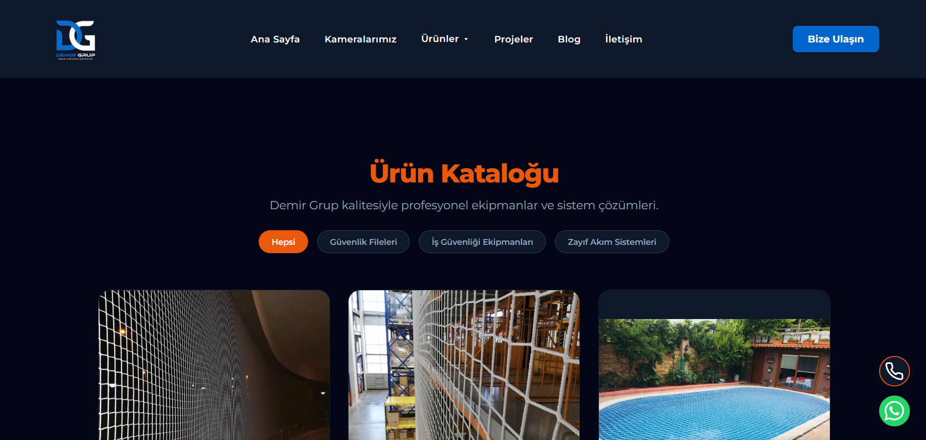 Ankara merkezli bir güvenlik ve inşaat altyapı firması için React kullanılarak geliştirilmiş, tüm sayfaları tam dinamik yapıya sahip kurumsal bir web platformudur. Tasarım sürecinde firmanın kurumsal kimliğini korumak adına logo renkleri referans alınmış ve modern bir kullanıcı deneyimi hedeflenmiştir. Entegre edilen admin paneli sayesinde ürünlerin ve blog içeriklerinin yönetimi (ekleme, çıkarma, güncelleme) kolayca yapılabilmektedir. Ürün kataloğu bölümünde kullanıcıların aradıkları donanımlara hızla ulaşabilmesi için filtreleme sistemi uygulanmıştır. Müşteri etkileşimini artırmak amacıyla kurgulanan VIP Teklif İste formu, talepleri doğrudan WhatsApp hattına ileterek hızlı bir dönüş süreci sağlamaktadır.