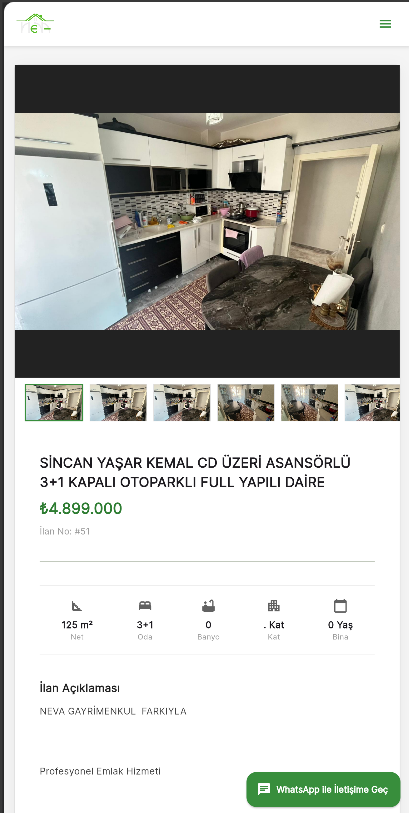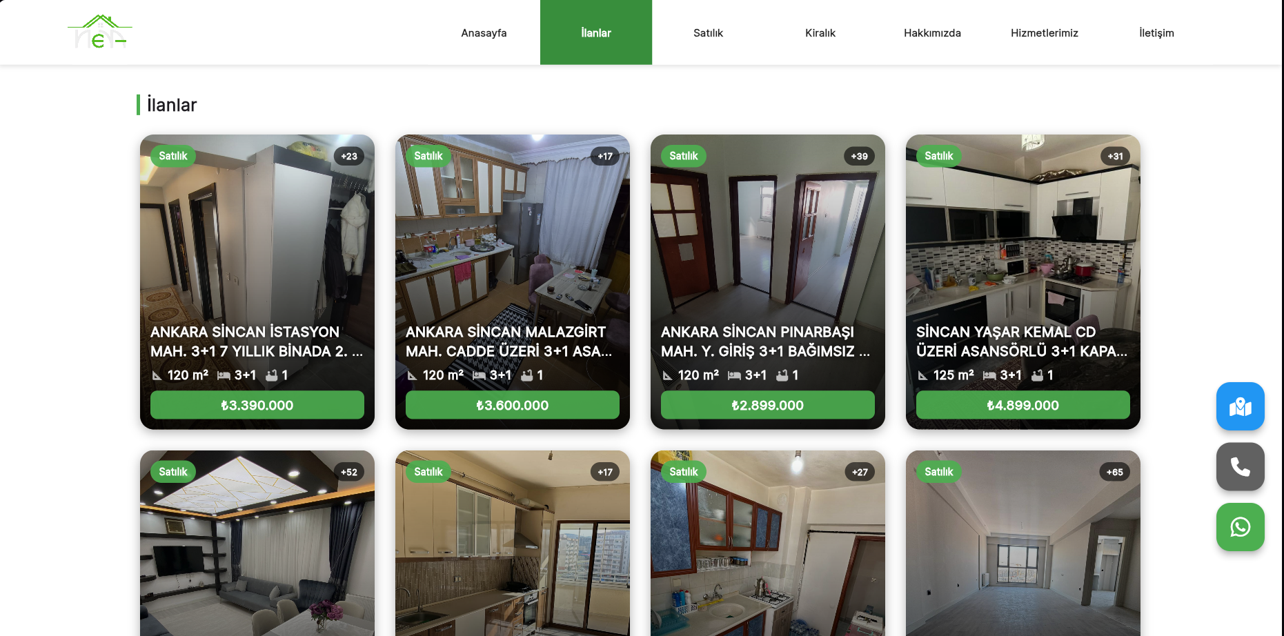 Gerçek bir işletme için React ve Supabase teknolojileri kullanılarak geliştirilmiş profesyonel bir gayrimenkul ilan platformudur. Proje başlangıçta Flutter ile geliştirilmiş olsa da SEO performansını artırmak ve arama motoru görünürlüğünü sağlamak amacıyla mimarisi React'e taşınarak optimize edilmiştir. Kullanıcıların aradıkları ilanlara en kısa sürede ulaşabilmesi için kolay erişim odaklı bir UX tasarımı benimsenmiştir. Sistem; ilanların detaylı kategorize edilmesine, yönetici tarafından yeni ilanlar eklenmesine ve ilgilenen kişilerin WhatsApp üzerinden doğrudan işletmeyle iletişime geçmesine olanak tanıyan işlevsel bir yapıya sahiptir.